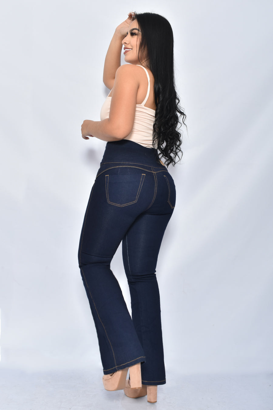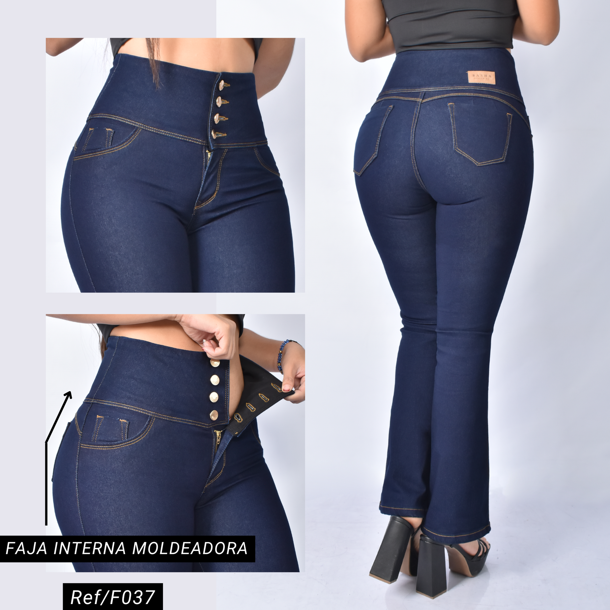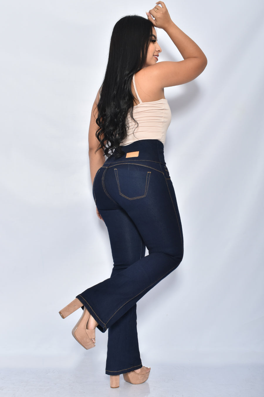 Jeans de dama en tela Strech con efecto levantacola y con faja integrada para un control de abdomen.